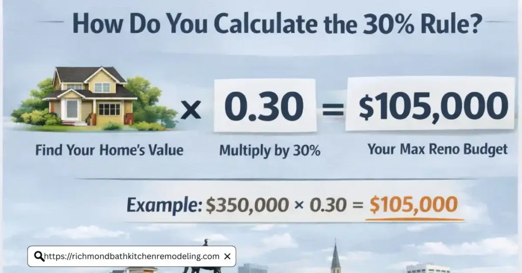 The 30% rule means you should not spend more than 30% of your home’s total value on renovations. It helps protect your investment and prevents overspending.